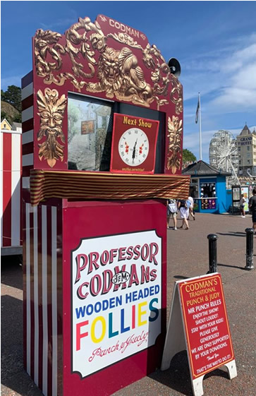 As the Punch and Judy man put away his show, she wheeled the pushchair