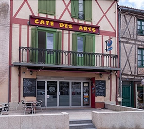 at a table outside the Café des Arts in the Place des Bancs in