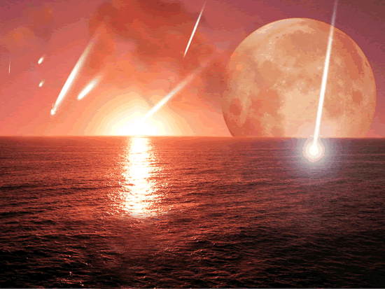 a moon that was almost fully risen above the horizon, reflecting the sunlight