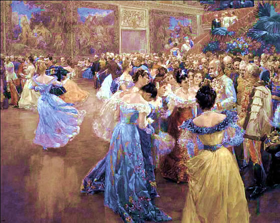 The dance floor was perfectly smooth and polished. Around the sides tables with silvery white linen were provided for eating and drinking and sitting out some of the dance sets. A buffet took up one end of the room and the orchestra the other.