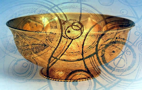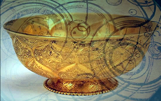 from one side to the other was a huge golden bowl. It was, truly, too