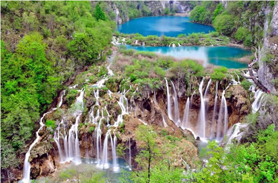 the sixteen lakes, two major waterfalls and numerous cataracts of Plitvice.