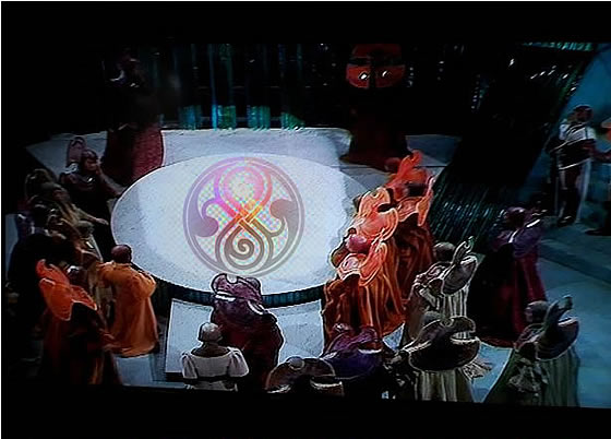 Meanwhile, in the Panopticon, Jocina Koscieda sat on the throne of Rassilon and demanded that she should be invested as Lord High President, ordering the Chancellor to begin the ceremony at once.