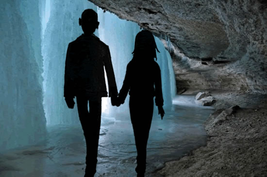 Behind the waterfall there was a cave, and this was where he wanted to bring her. The sound of the waterfall was less loud inside. It was a gentle, soothing, background sound. Rose could only dimly see at first, but then there was the sound of a match being struck and a candle lit and gradually she was able to see walls that glittered with some kind of quartz-like element in the rock. She saw a ‘bed’ of sorts made up of fur rugs and blankets in the far end of the cave and near the entrance a rug spread out and a picnic meal laid upon it, along with a bottle of wine and glasses for two.