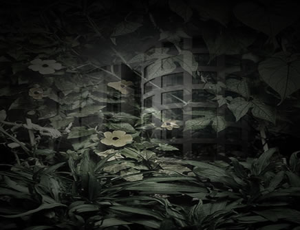 He was looking out of one of the windows. The room had several very large ones, but the blinds were drawn across them all. Rory had pulled one back and looked out at what he had first assumed to be dusk. Now he saw that the strong sunlight of a mid-afternoon was simply obscured by thick vines growing across the windows.