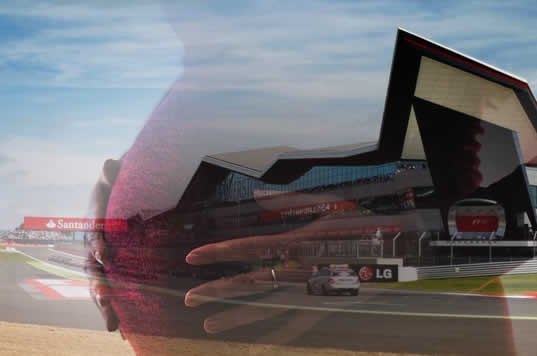heat Silverstone racetrack, its garages, grandstands and hospitality suites,