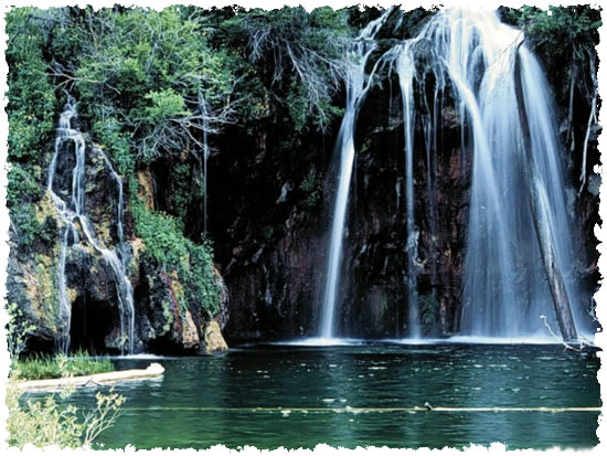 the falling torrent and looked across the pool.