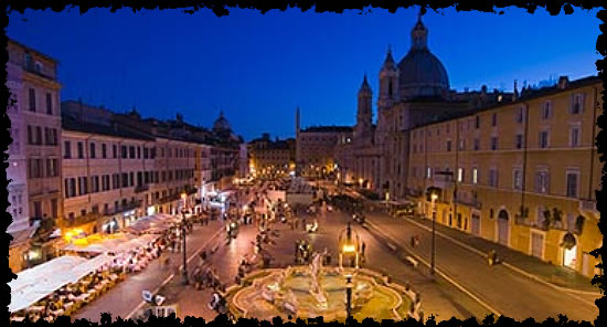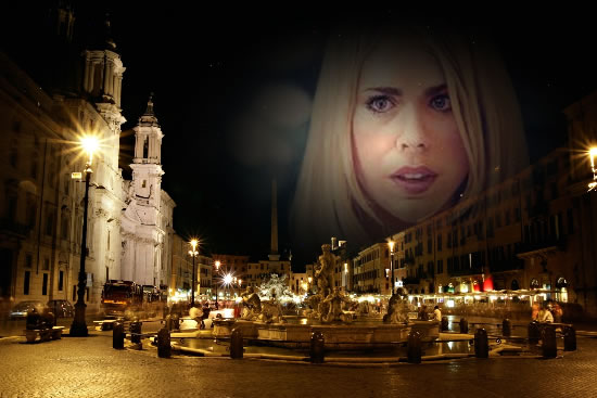 Specifically, they were in the Piazza Navona where the Fountain of the Four Rivers was subtly uplit at night. Somewhere nearby there was a busker playing an accordion and singing an old Italian love song – a detail The Doctor couldn’t have contrived if he had planned it.