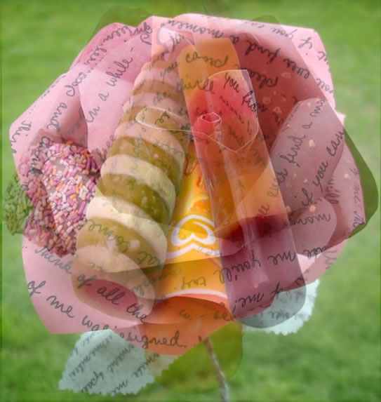 Sanoop held up his rose. It fell apart in a soggy mess. He had been holding it in the same hand as his ice lolly. Jimmy took his stick and tried to read it, but it was ruined.