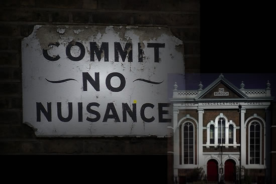 “There’s the sign,” Sukie announced, pointing to a white painted square of either wood or metal fixed part way up the chapel wall. ‘Commit no Nuisance’ was printed in bold black letters.