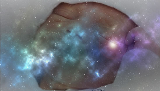 being born. The pain of being pushed out into the world. The brightness